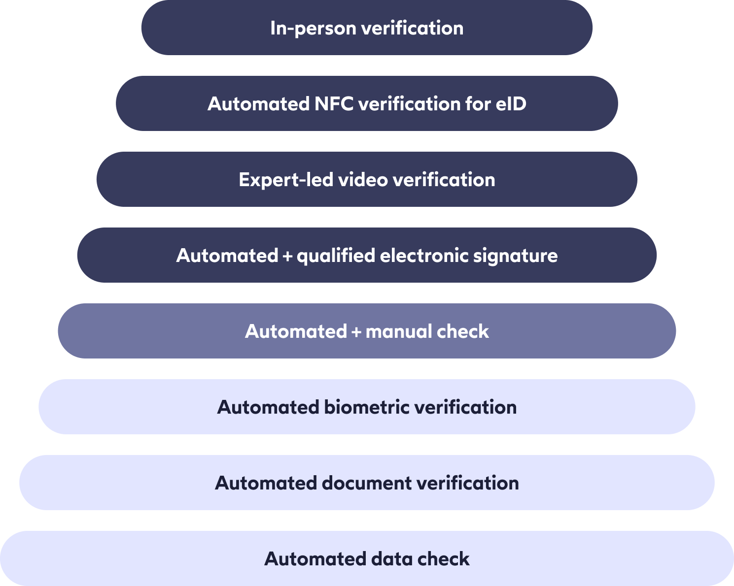 Add additional layers of assurance and scale according to your risk appetite and regulatory requirements to achieve compliant, scalable and holistic identity verification.
